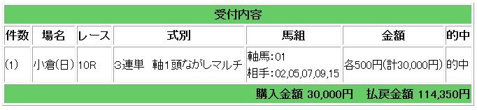 会員様情報で3連単22870円的中となりました。