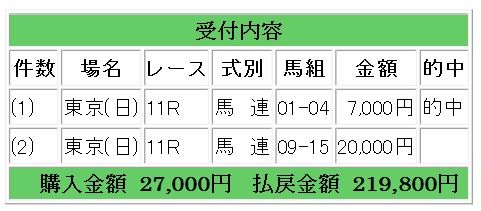 会員様情報で馬連2点的中となりました。