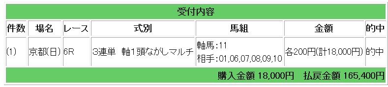 会員様情報で8万2700円的中となり、16万5400円の払い戻しとなりました。