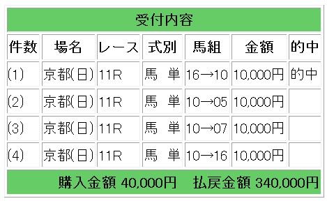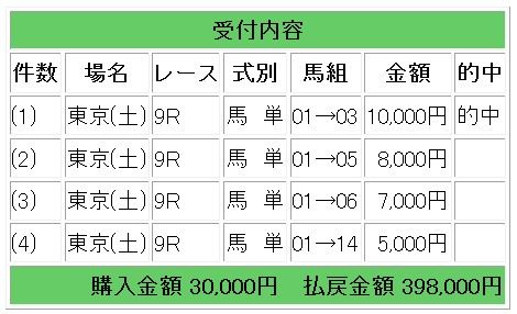 ◎無料公開情報馬1着で会員様には馬単4点指示で34倍的中となりました。