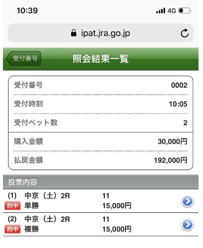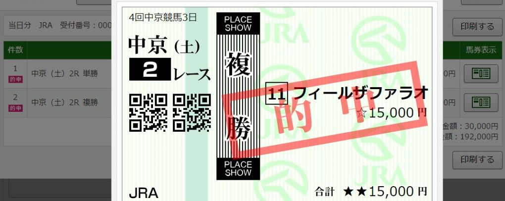菊花賞 21万3200円獲得
