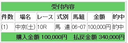 10/13 秋華賞 53万2500円の払い戻し