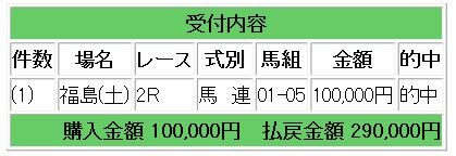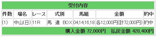 皐月賞は16万5000円獲得!