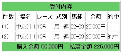 会員様には9ビッグドリームからの馬連2点指示で9倍的中となり、22万5000円の払い戻しとなりました。