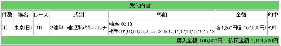 ・11月25日 ジャパンカップ 42万円獲得