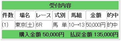 会員様には馬単1点指示で2.7倍的中となり、13万5000円の払い戻しとなりました。