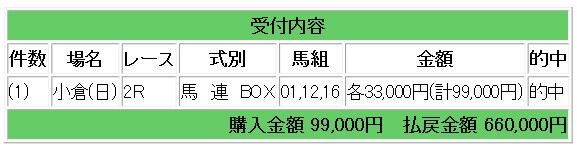 6リードプリンシパルからの馬連2点指示で10.5倍的中となり、31万5000円の払い戻しとなりました。