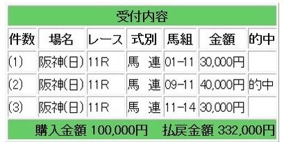 22年の大阪杯は複勝1点指示で25万2000円獲得