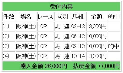 13サンライズフレイムからの馬連7.7倍的中、3連単50.4倍的中で18万5000円の払い戻しとなりました。